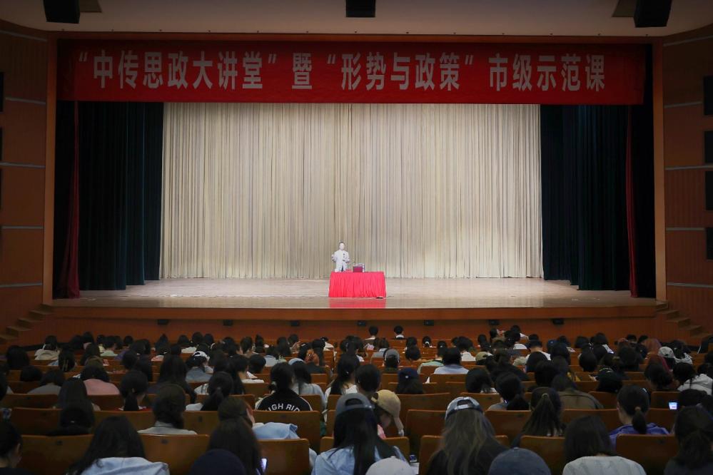 (通讯员 张诗雨)2025年秋季学期“中传思政大讲堂”暨“形势与政策”市级示范课第一讲于10月15日下午在中传礼堂开讲。本场课程特邀中国传媒大学区域国别传播研究院台湾传媒研究中心主任、媒介与公共事务研究院副院长安峰山老师为同学们作“中美关系背景下的台海局势”主题讲座。2025级约1000名本科生现场参加了本次学习,讲座由马克思主义学院武闽副教授主持。