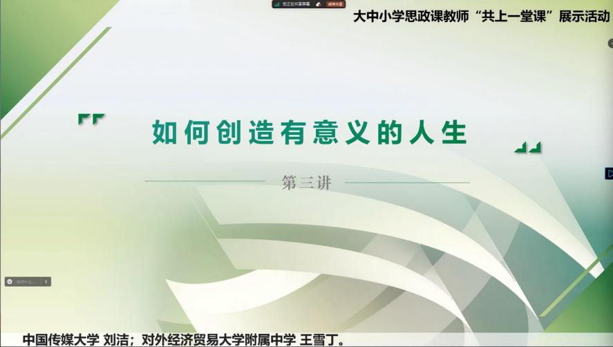 两位主讲教师围绕“如何创造有意义的人生”主题,依托相邻学段衔接教研机制,持续打磨以课程为导向的一体化思政育人体系,培育了学生良好认知结构与思维方式。