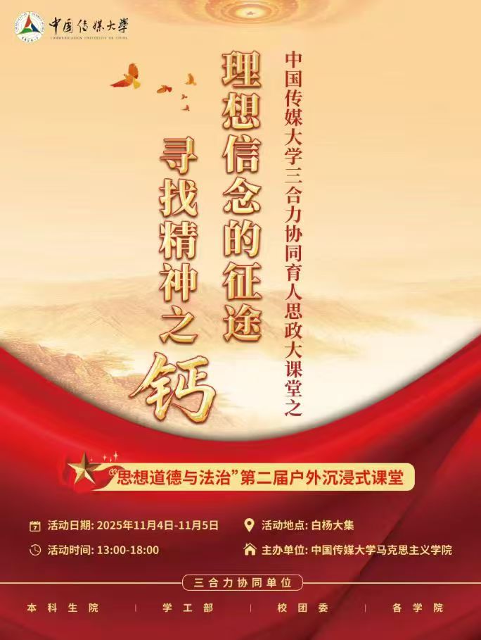 中国传媒大学“三合力协同育人思政大课堂”之“思想道德与法治”课程第二届户外沉浸式课堂即将开启!