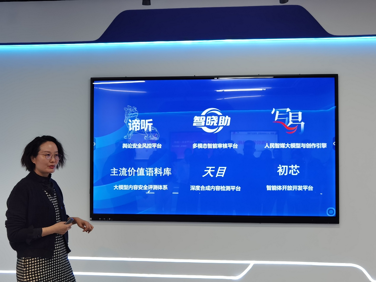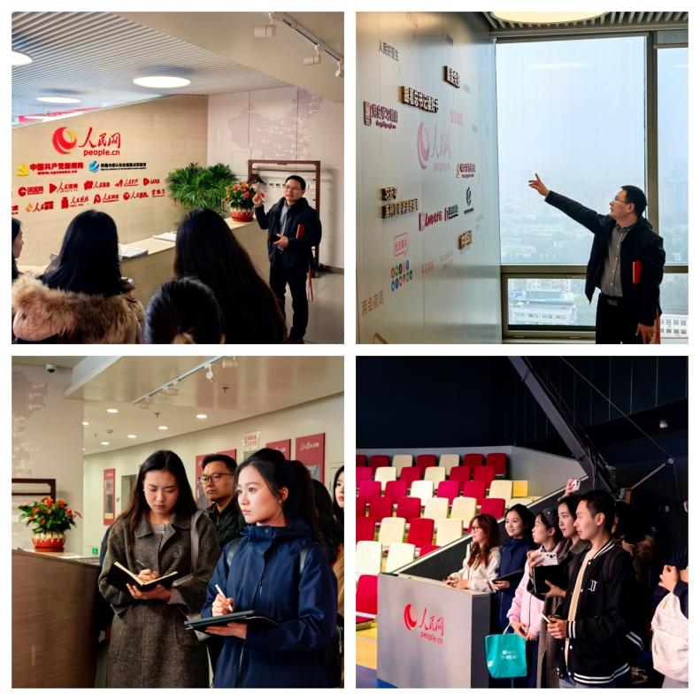 人民网运营部总监张俊成、移动内容部副主任熊旭、移动内容部教育频道主编孙竞和传播内容认知全国重点实验室科研管理部主任郭筱凤带领师生们深入了解了人民网的组织架构、业务布局、品牌矩阵、技术平台及近年来取得的成果。