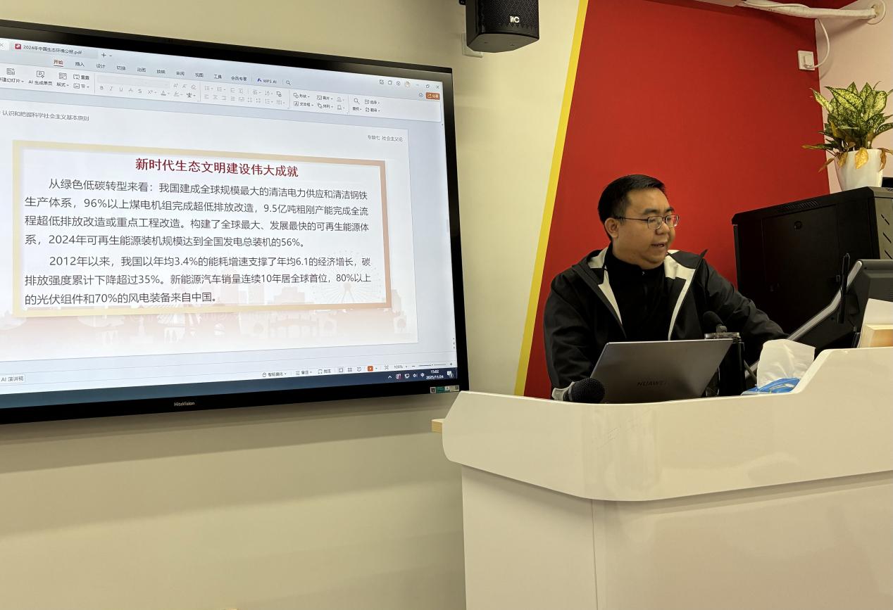 在课程设计与实施中,马院创新内容供给与教学方法。副院长高宇将荣获北京市思政课教学基本功大赛一等奖的“生态文明建设专题”教案用于试验班授课,以优质教学资源保障育人质量。