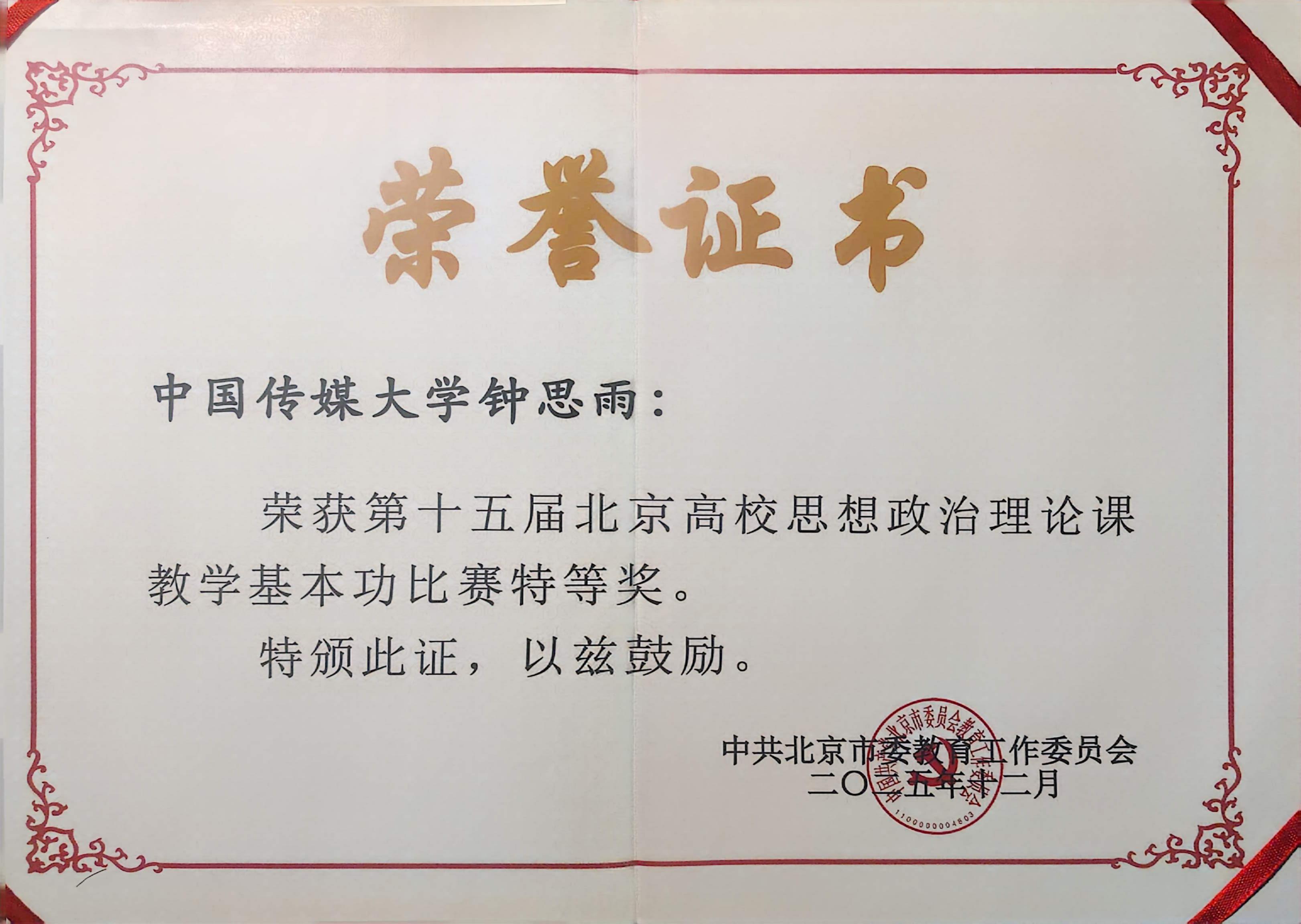 重大突破!钟思雨喜获北京高校思政课教学基本功大赛特等奖
