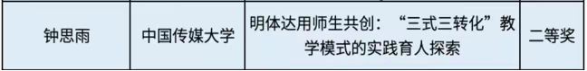 这一佳绩不仅是钟思雨老师个人教学能力的集中展现,更是马克思主义学院深入贯彻落实习近平总书记关于思政课建设重要指示精神,系统推进学校党委关于思政课建设“331”工程,全面深化教师能力提升工程的标志性成果,彰显了中国传媒大学在思政课教学改革创新与高质量师资培养方面的系统性成效。