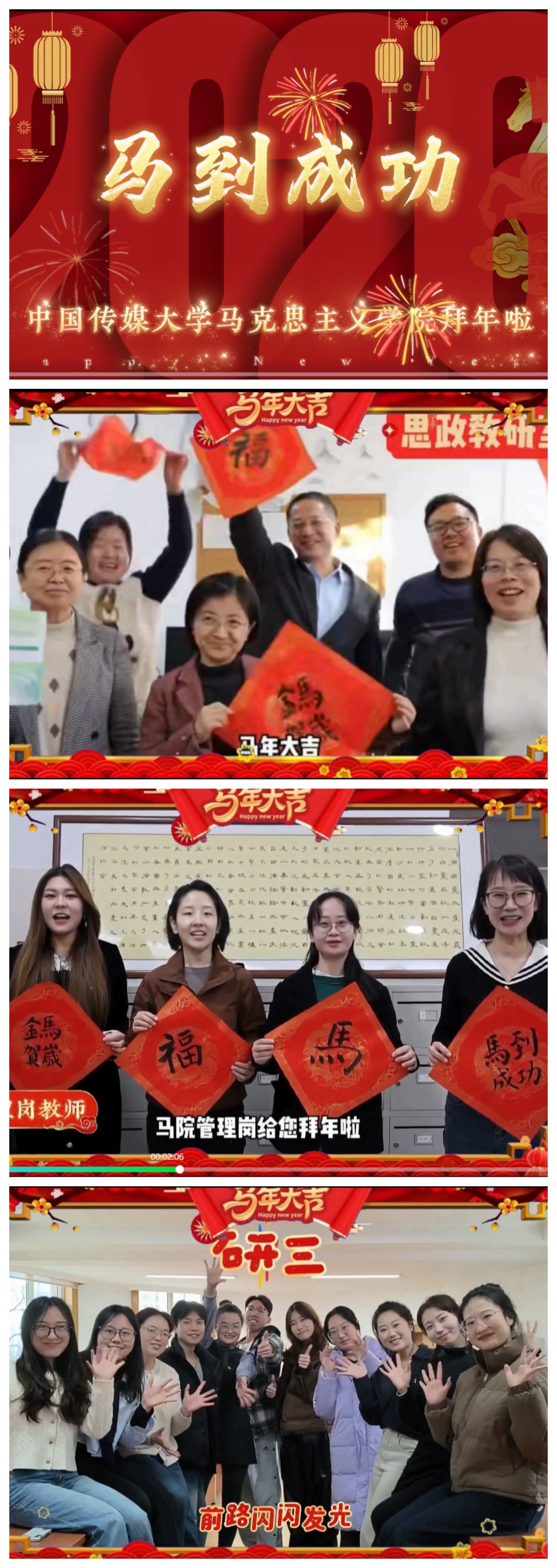 联欢会前,学院师生纷纷录制了真诚美好的祝福视频屏幕上一句句“马年大吉”“万事顺意”传递着师生同心的深厚情谊,彰显了学院大家庭的祥和氛围。