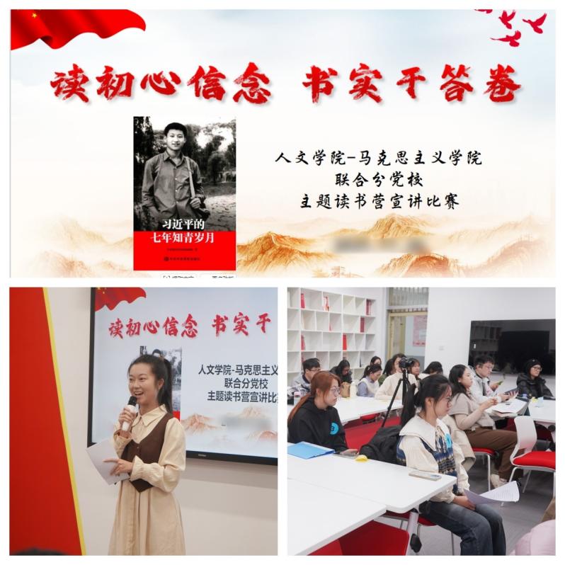 (通讯员 黄颖萱 摄影 赵相茹 徐偲艺 尹书敏)为深入推动青年学子在阅读经典中筑牢信仰根基,在学思践悟中强化实干担当,马克思主义学院与人文学院党委创新理论学习形式,在第71期入党积极分子培训班暨初级党校中组织学员加入“新锐领航”主题读书营,在青年思政课教师带领下共读《习近平的七年知青岁月》一书。在为期近两个月的读书营中,经过导读、领读、个人自学、共读等精读学习,初级党校于近日举办“读初心信念 书实干答卷”读书感悟宣讲比赛。比赛通过“青年讲、青年听、青年悟”的朋辈引领模式,旨在引导入党积极分子从榜样青春的奋斗足迹中汲取精神力量,深化对党的创新理论的政治认同、思想认同与情感认同。