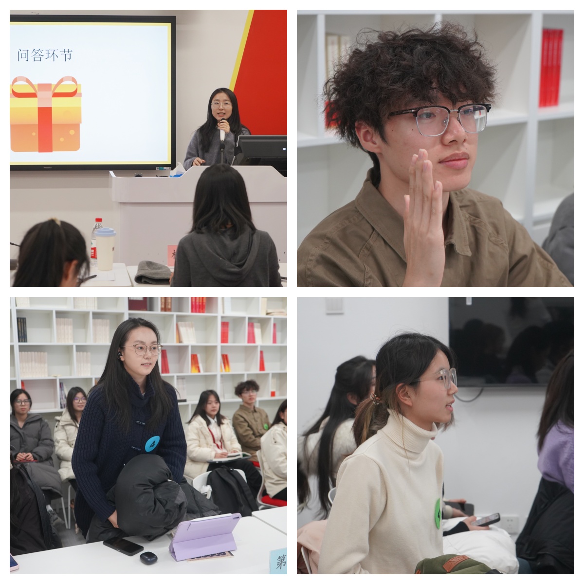 本次宣讲比赛展示了同学们思考感悟的成果,为增强宣讲比赛的现场互动性,全面考察同学们精读效果和知识功底,比赛特别安排了知识问答环节。读书营领读者、青年思政课教师贾晰精心从书中挑选了18道具有代表性的知识点,设计了一系列紧扣主题的问答题目。选手们团队合作,既回顾了重要知识点,加深了对书中内容的理解,又通过团队合作享受了充满知识与力量的比赛。