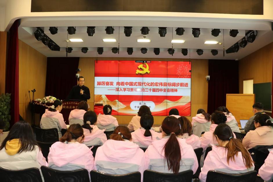 宣讲中,张凯副教授从历史逻辑、理论逻辑、实践逻辑三个维度,梳理了从“一五”计划到“十五五”规划的发展脉络,阐明制定中长期规划指导经济社会发展,是我们党治国理政的重要方式。重点阐释“十四五”时期我国发展取得的重大成就、“十五五”时期经济社会发展的重大意义、党中央对国内外形势的基本判断,以及“十五五”时期经济社会发展的指导思想、重大原则、主要目标、战略任务、重大举措和根本保证,从而明确贯彻落实全会精神需要着重把握的重点。此外,他结合幼儿教育在国民教育体系中的基础作用,从“培育时代新人”的角度,讲解如何将全会精神融入学前教育工作。他鼓励年轻教师们勇担时代教育使命,为建设教育强国脚踏实地、踔厉奋发。