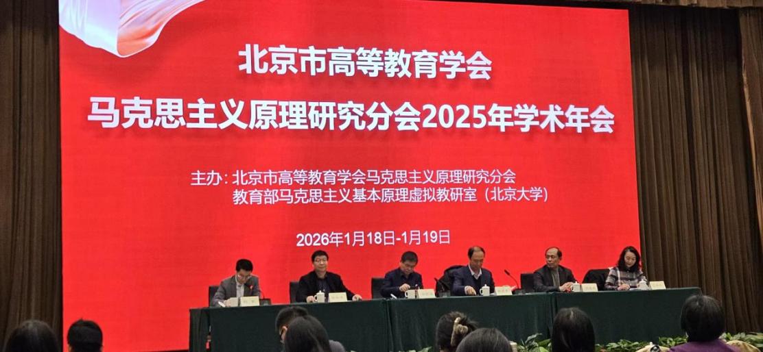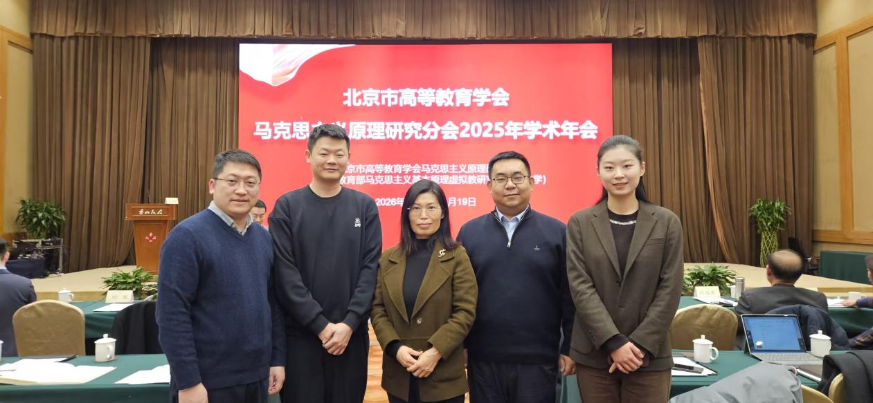 (通讯员 高宇 魏飞)为扎实推进思政课提质增效“331”工程,提升思政课教师能力,2026年1月18日-19日,由马克思主义学院副院长、马克思主义基本原理教研部主任高宇带队,教研室教师张静敏、魏飞、段锐、王雨萧一行参加北京市高等教育学会马克思主义原理研究分会2025年学术年会。此次参会聚焦“马克思主义基本原理”课程建设与教学能力提升,旨在对标学术前沿与教学改革要求,加强校际交流,推动课程高质量发展。