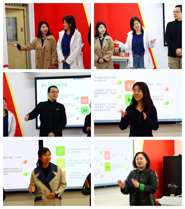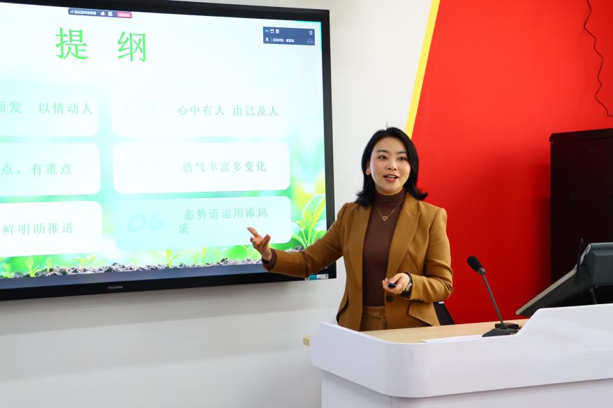 “本次培训所讲的停连、重音技巧让我豁然开朗。通过互动训练,我发现同样文字的一段话用不同语气、不同停顿说出来的效果是完全不同的。这也启发我通过调整自己的语言表达,更好地让学生接收到我所要传达的知识与信息。”“这次讲座的逻辑线特别清晰,层层递进、内容科学,能够感觉是精心打磨设计的专题培训。讲座中关于站姿、重音的强调是对我最有帮助的部分。我会用心打磨语言、提升讲课时的精气神,从多个方面提升教学整体的质感。”“这次的培训特别实用有效,我之前也知道运用手势的重要性,但是没有留意到很多细节性的问题,例如‘介绍他人的时候要手势比眼神先出去’等。整个讲座所涉及的内容都极具操作性,确实能够帮助我们更会表达、更善育人。”参与教师纷纷表示这次培训内容扎实、针对性强、实用性高,既有理论高度,又有实践温度,让大家收获满满、受益匪浅。